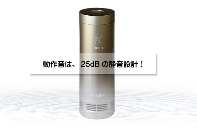 「Aircare」の筒状の小さなボディーの中に「2つのフィルター」、「マイナスイオン発生装置」が、各層で有害物質をキャッチし抑えるよう搭載されています。